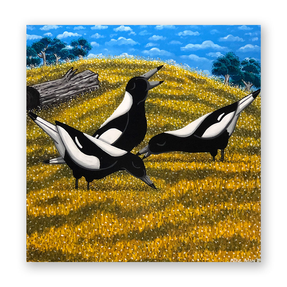 Medium: Acrylic on stretched cotton canvas with gloss final varnish on pine wood frame. Ready to hang. Size: 1200 x 1200mm. Price: $1,190 (plus shipping)